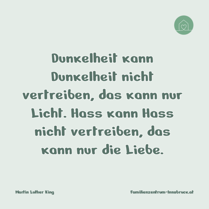 Dunkelheit kann Dunkelheit nicht vertreiben, das kann nur Licht. Hass kann Hass nicht vertreiben, das kann nur die Liebe.