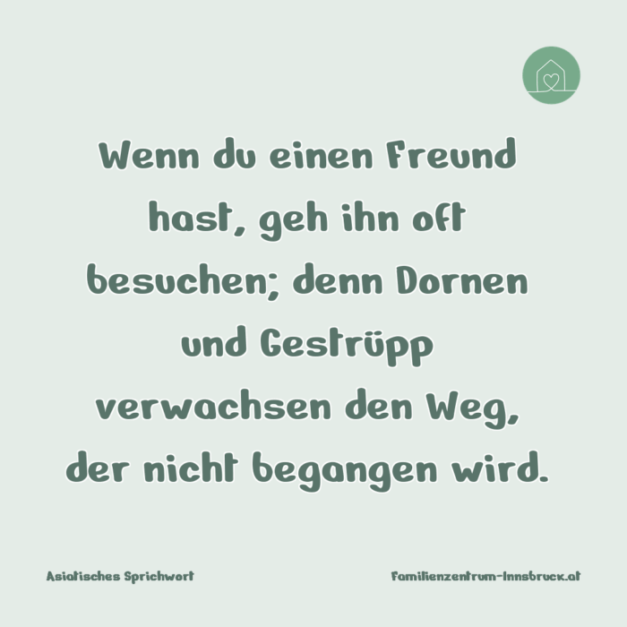Wenn du einen Freund hast, geh ihn oft besuchen; denn Dornen und Gestrüpp verwachsen den Weg, der nicht begangen wird.